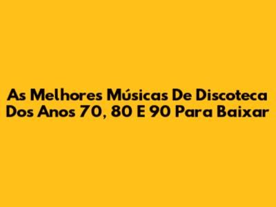 As Melhores Músicas De Discoteca Dos Anos 70, 80 E 90 Para Baixar