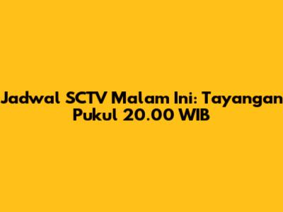 Jadwal SCTV Malam Ini: Tayangan Pukul 20.00 WIB