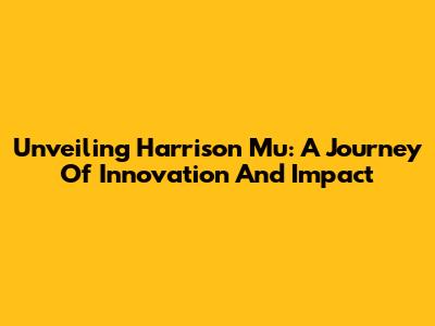 Unveiling Harrison Mu: A Journey Of Innovation And Impact