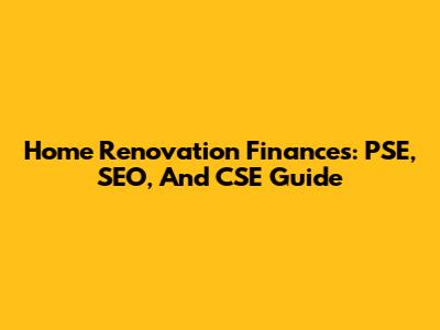 Home Renovation Finances: PSE, SEO, And CSE Guide
