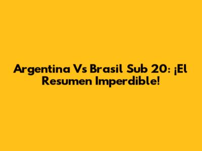 Argentina Vs Brasil Sub 20: ¡El Resumen Imperdible!