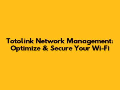 Totolink Network Management: Optimize & Secure Your Wi-Fi