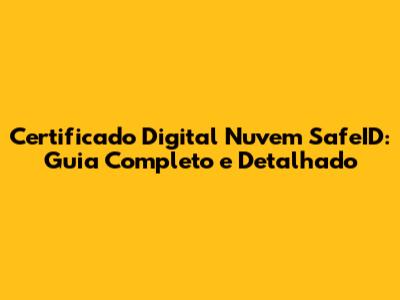 Certificado Digital Nuvem SafeID: Guia Completo E Detalhado