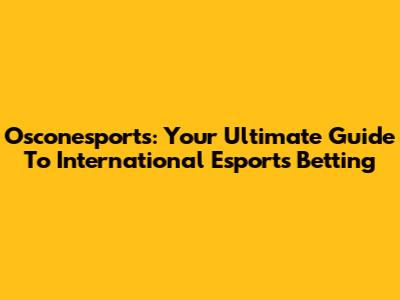 Osconesports: Your Ultimate Guide To International Esports Betting