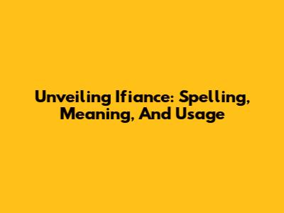 Unveiling 'Ifiance': Spelling, Meaning, And Usage