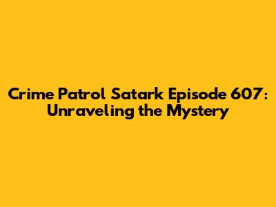 Hey guys, let's dive into the gripping world of Crime Patrol Satark and dissect Episode 607! This episode, like many others, promises a rollercoaster of emotions, suspense, and a deep dive into the complexities of human behavior. If you're a fan of true crime and enjoy a good mystery, then buckle up! We're about to unpack the narrative, the characters, and the overall impact of this particular episode. Get ready for a thrilling ride as we unravel the details of this compelling story.