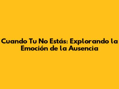 Conclusión: El Legado de "Cuando Tu No Estás"