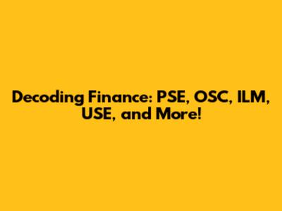 Decoding Finance: PSE, OSC, ILM, USE, And More!