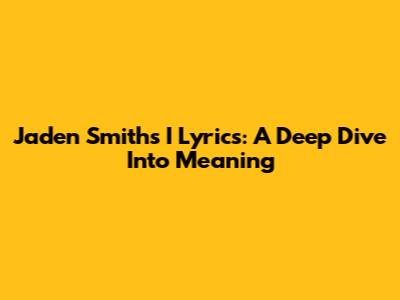 Jaden Smith's 'I' Lyrics: A Deep Dive Into Meaning