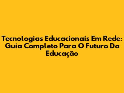 Tecnologias Educacionais Em Rede: Guia Completo Para O Futuro Da Educação