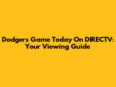 Dodgers Game Today On DIRECTV: Your Viewing Guide