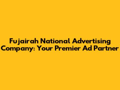 Hey guys! Ever wondered who's behind those eye-catching billboards and amazing ad campaigns in Fujairah? Well, let's dive into the world of Fujairah National Advertising Company! This company is a big player in the advertising scene, helping businesses of all sizes get their message out there. Whether you're a local startup or a multinational corporation, understanding the role and impact of advertising companies like Fujairah National Advertising is super crucial.