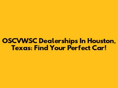 OSCVWSC Dealerships In Houston, Texas: Find Your Perfect Car!