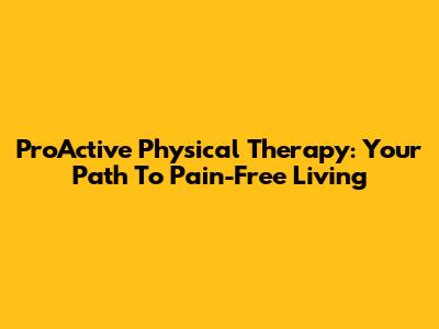 ProActive Physical Therapy: Your Path To Pain-Free Living