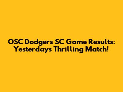 OSC Dodgers SC Game Results: Yesterday's Thrilling Match!