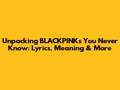 Unpacking BLACKPINK's 'You Never Know': Lyrics, Meaning & More