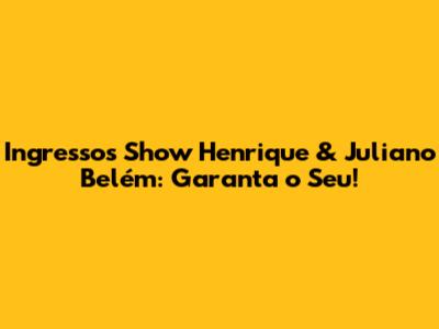 Ingressos Show Henrique & Juliano Belém: Garanta O Seu!