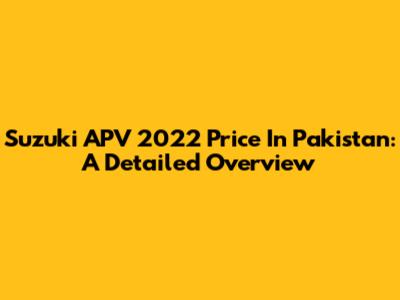 Suzuki APV 2022 Price In Pakistan: A Detailed Overview