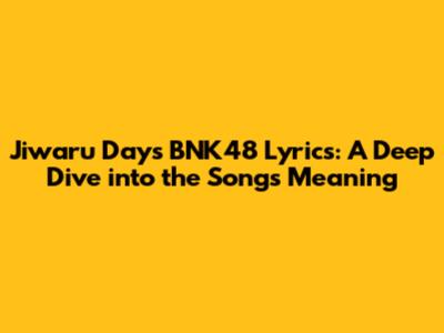 Jiwaru Days BNK48 Lyrics: A Deep Dive Into The Song's Meaning
