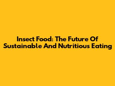 Insect Food: The Future Of Sustainable And Nutritious Eating