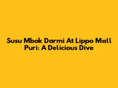 Susu Mbok Darmi At Lippo Mall Puri: A Delicious Dive
