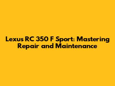 Lexus RC 350 F Sport: Ultimate Guide To Repair & Maintenance