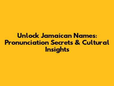 Unlock Jamaican Names: Pronunciation Secrets & Cultural Insights