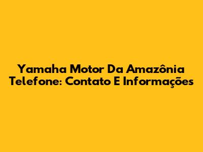 Yamaha Motor Da Amazônia Telefone: Contato E Informações