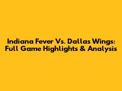 Indiana Fever Vs. Dallas Wings: Full Game Highlights & Analysis