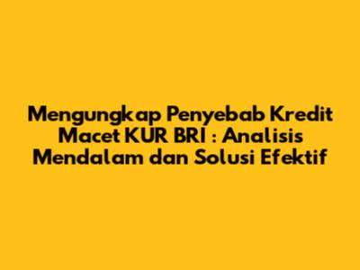 Guys, siapa di sini yang pernah dengar tentang Kredit Usaha Rakyat (KUR) BRI? Pasti familiar, kan? KUR BRI ini emang jadi salah satu andalan buat para pelaku usaha mikro, kecil, dan menengah (UMKM) buat dapetin modal. Tapi, ada satu hal yang sering bikin pusing, yaitu kredit macet. Nah, di artikel ini, kita bakal kupas tuntas soal kredit macet KUR BRI, mulai dari penyebabnya, dampaknya, sampe solusi yang bisa diambil. Yuk, simak baik-baik!