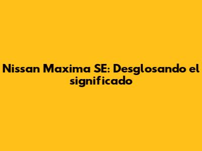 En resumen, "SE" en el Nissan Maxima significa Sport Edition o Edición Deportiva. Es mucho más que dos letras; representa un compromiso con el rendimiento, la emoción y el estilo. El Maxima SE se destaca por sus motores más potentes, su suspensión deportiva y su diseño deportivo, que lo distinguen de otros modelos. Su legado como un sedán de alto rendimiento y su atractivo duradero entre los entusiastas del automóvil consolidan su estatus como un ícono automotriz. Entonces, la próxima vez que veas un Maxima SE en la carretera, ya sabes, te estás topando con un coche con una rica historia y un compromiso con el rendimiento.