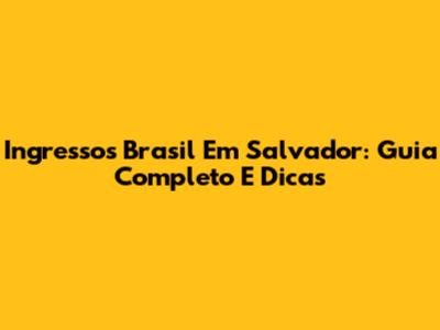 Ingressos Brasil Em Salvador: Guia Completo E Dicas