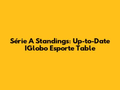 Série A Standings: Up-to-Date IGlobo Esporte Table
