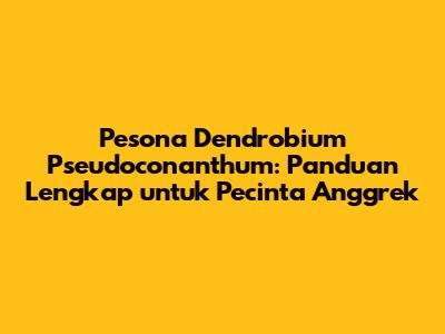 Dengan mengikuti tips perawatan di atas, Dendrobium Pseudoconanthum Anda akan tumbuh subur dan memberikan keindahan bunga yang memukau.