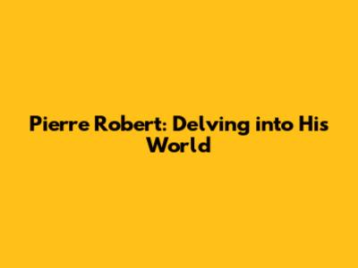 Pierre Robert: Unveiling His Life And Legacy