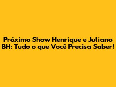 Então, galera, agora que você já sabe tudo sobre o próximo show de Henrique e Juliano em BH, prepare-se para a festa! Fique ligado nas informações, garanta o seu ingresso e prepare-se para cantar e dançar muito. A dupla promete um show inesquecível, com muita música boa, energia e animação.