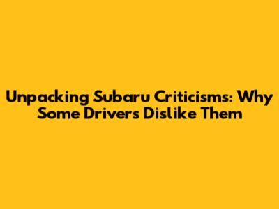 Unpacking Subaru Criticisms: Why Some Drivers Dislike Them