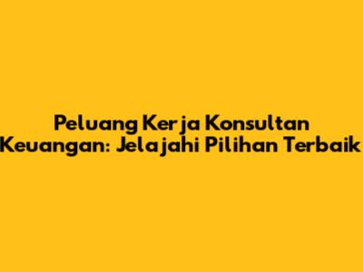 Peluang Kerja Konsultan Keuangan: Jelajahi Pilihan Terbaik