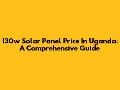 I30w Solar Panel Price In Uganda: A Comprehensive Guide
