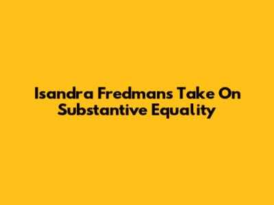 Isandra Fredman's Take On Substantive Equality
