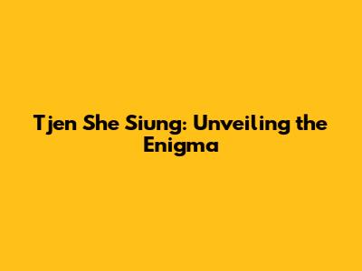 Let's dive deep into the mystery surrounding Tjen She Siung. Ever heard the name and wondered, "Who is this person and what's the story?" Well, you're not alone! The name Tjen She Siung might not be immediately recognizable to everyone, but that's precisely what makes it such an intriguing subject. Maybe it's a historical figure shrouded in the mists of time, a modern-day innovator working behind the scenes, or perhaps a character from a captivating piece of literature or folklore. Without specific details, it becomes a fascinating exercise in speculative exploration, piecing together potential narratives and uncovering the possible significance of this enigmatic name. The beauty of a name like Tjen She Siung lies in its ambiguity; it invites curiosity and encourages us to delve deeper, sparking conversations and igniting the imagination. It could represent a place, a concept, or even a symbol – the possibilities are truly endless. Embracing the unknown allows us to appreciate the richness and complexity of our world, where every name, every person, and every story holds a unique and valuable piece of the puzzle. So, let's embark on this journey of discovery together, and perhaps, along the way, we'll begin to unravel the mystery of Tjen She Siung. This exploration isn't just about finding a definitive answer; it's about appreciating the questions themselves and the diverse paths they lead us down. Who knows what hidden treasures we might unearth? Maybe Tjen She Siung is a key to understanding something much larger than ourselves. Let's get started, guys!
