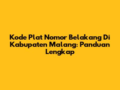 Kode Plat Nomor Belakang Di Kabupaten Malang: Panduan Lengkap