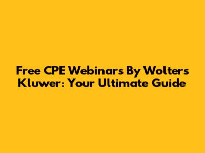 Free CPE Webinars By Wolters Kluwer: Your Ultimate Guide