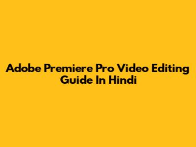 Adobe Premiere Pro Video Editing Guide In Hindi