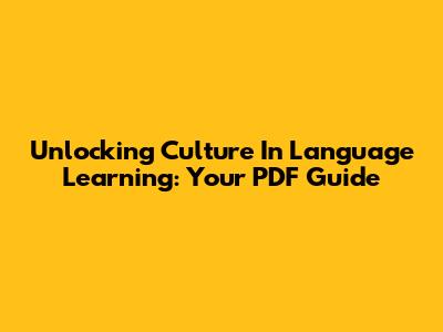 Unlocking Culture In Language Learning: Your PDF Guide