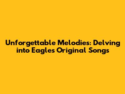 Hey music lovers! Ever found yourself completely captivated by a song, feeling every beat and word sink deep into your soul? For many of us, the music of The Eagles does just that. Their songs aren't just tunes; they're experiences, stories, and a deep dive into the human condition. Today, let's embark on a journey, exploring the heart and soul of The Eagles by focusing on their original songs, the tracks where their genius truly shines. We're going to uncover the magic woven into their lyrics, the stories behind the music, and why these songs continue to resonate with generations.