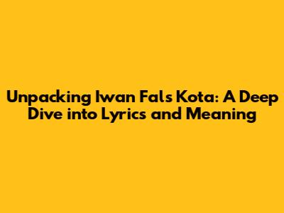 Hey music lovers! Ever found yourself completely engrossed in a song, feeling like it just gets you? That's definitely the vibe when you listen to Iwan Fals' "Kota." This song isn't just a collection of words and tunes; it's a powerful narrative, a slice of life, and a social commentary all rolled into one. So, let's dive deep, shall we? We're going to unpack the lyrics of Iwan Fals' "Kota," the meaning behind them, and what makes this song a timeless classic. We'll explore the context, analyze the messages, and maybe even get a little emotional along the way. Ready to get started?