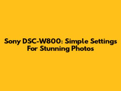 Sony DSC-W800: Simple Settings For Stunning Photos