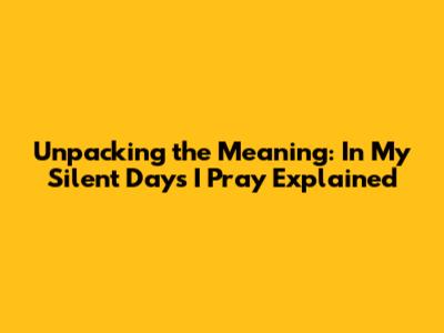Deciphering the Phrases: 'In My Silent Days' and 'I Pray'