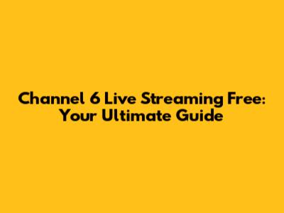 Watch Channel 6 Live Streaming Free: Your Ultimate Guide